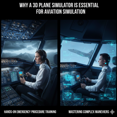 A 3D plane simulator can simulate these at extremely high fidelity while removing the risk completely. Pilots can experience critical situations, make errors, and refine their responses without the hazards of real airports and aircraft.